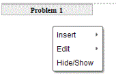 En kontekstmeny åpnes med alternativer for innsetting av oppgaver, sider, applikasjoner og PublishView™ elementer, redigeringsalternativer for å fjerne mellomrom eller slette en side, og alternativer for å skjule og vise oppgaveslutt og elementkanter.