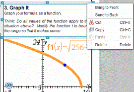 En interaktiv tilstand vises med en blå ramme rundt elementet. For å gå inn i interaktiv tilstand venstreklikker eller høyreklikker du hvor som helst på elementets hoveddel. Når du er i en interaktiv tilstand kan du arbeide med innholdet i elementet. Du kan for eksempel legge til eller redigere tekst i en tekstboks, eller utføre matematiske funksjoner i en TI-Nspire™ applikasjon. Når du er i en interaktiv tilstand inneholder kontekstmenyene spesifikke alternativer for innholdet i et element. |