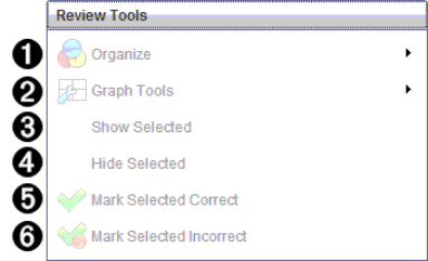 Gjennomgangsverktøyene lar deg organisere svardata, bruke grafisk verktøy, skjule eller vise svar og markere svar på spørsmål eller fra hurtigtest som korrekte eller ikke korrekte. |