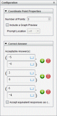 Åpne konfigurasjonsverktøyet for å angi antall punkter, legge til forhåndsvisning av graf, skrive inn et korrekt svar og angi ekvivalente svar som korrekte. |