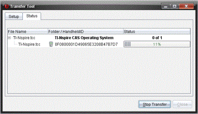 Overføringsverktøyets dialogboks inneholder en Oppsett-fane og en Status-fane.