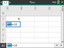 Du kan sjekke verdien til en eksisterende variabel ved å skrive inn navnet på Kalkulator-kommandolinjen. Når du skriver inn navnet på en lagret variabel, vises den i fet skrift.