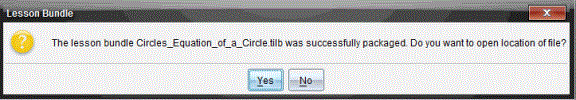 En dialogruta visas som bekräftar att .tilb-filen har skapats och att lektionspaketet har packats.