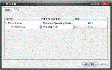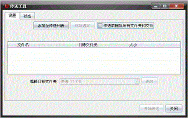 “传送工具”对话框包含“设置”选项卡和“状态”选项卡。