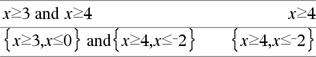 布林運算式1 and 布林運算式2Þ布林運算式 布林列表1 and 布林列表2Þ布林列表 布林矩陣1 and 布林矩陣2Þ布林矩陣 傳回真偽值或原始輸入的化簡形式。 |