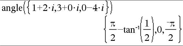 angle(運算式1)Þ運算式 傳回引數的角度,並將引數解譯成複數。