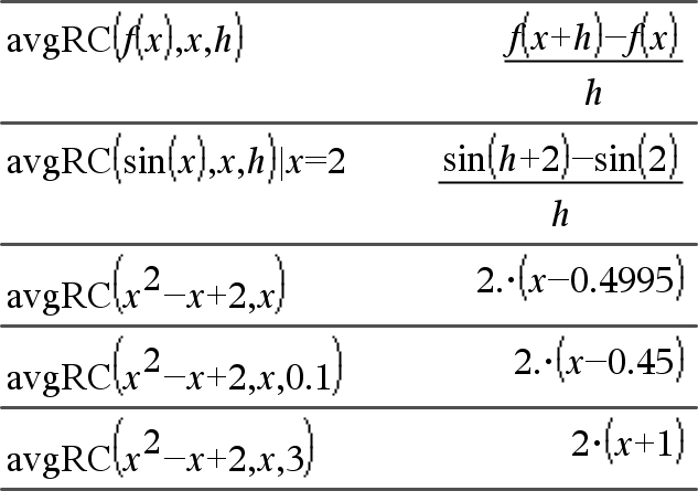 傳回向前差商(平均變化率)。 運算式1 可以是使用者定義的函數名稱(請參考 指定值時,此值會取代之前賦值的所有變數,或目前以「|」取代的所有該變數。 Step 代表步階值。如果省略步階,則會以 0.001 為預設值。 請注意,類似函數 |