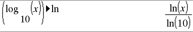 Expr 4lnÞ運算式 將輸入 Expr 轉成只包含自然對數(ln)的運算式。 附註: 如果要從電腦鍵盤插入本運算子,可輸入 @>ln。 |