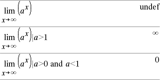 limit() 若無法求出唯一極限,則會傳回自己或 undef,視情況而定。這個情形不一定表示沒有唯一極限。undef 代表結果是有限或無限大的未知數,或是這類數字的整個集合。 |