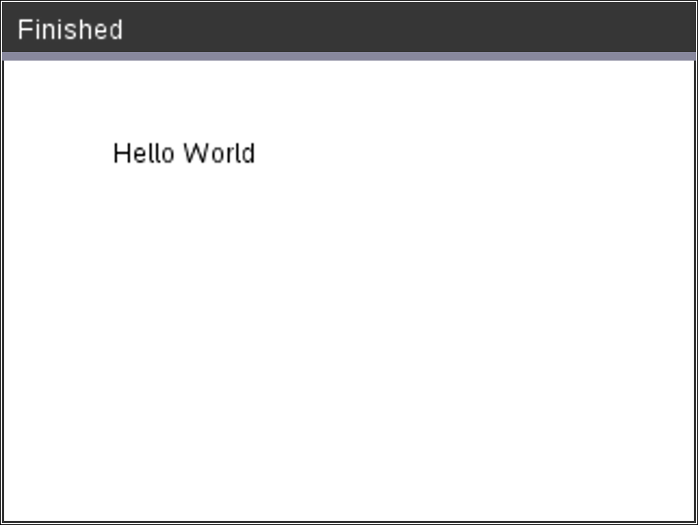 Die Befehle, mit denen Text im Calculator gedruckt wird – disp und dispAt – sind im Grafikkontext unterstützte Befehle. Der Text dieser Befehle wird an den Calculator-Bildschirm (nicht an den Grafikbildschirm) gesendet und ist nach der Beendigung des Programms sichtbar. Das System wechselt anschließend zurück zur Calculator App.