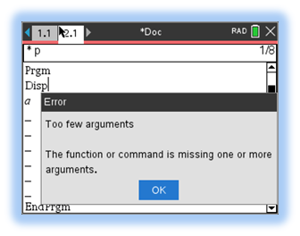 Wenn Befehle, die ein oder mehrere Argumente erfordern, mit einer unvollständigen Argumentenliste aufgerufen werden, wird anstelle eines „Syntax“-Fehlers ein „Zu wenige Argumente“-Fehler ausgegeben.