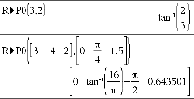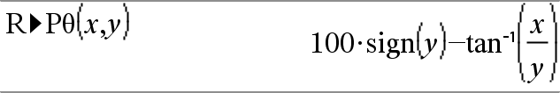 Gibt die äquivalente θ-Koordinate des Hinweis: Das Ergebnis wird gemäß der aktuellen Winkelmoduseinstellung in Grad, in Neugrad oder im Bogenmaß zurückgegeben. Hinweis: Sie können diese Funktion über die Tastatur Ihres Computers eingeben, indem Sie R@Ptheta(...) eintippen. |