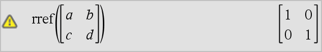 Die Warnung erscheint, weil das verallgemeinerte Element 1/a für a=0 nicht zulässig wäre. Sie können dieses Problem umgehen, indem Sie zuvor einen Wert in a speichern oder wie im folgenden Beispiel gezeigt eine Substitution mit dem womit-Operator „|“ vornehmen.