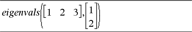 Definiere eigenvals(a,b)=Prgm © Programm eigenvals(A,B) zeigt die Eigenwerte von A·B an Try Disp "A= ",a Disp "B= ",b Disp " " Disp "Eigenwerte von A·B sind:",eigVl(a*b) Else If errCode=230 Then Disp "Fehler: Produkt von A·B muss eine quadratische Matrix sein" ClrErr Else PassErr EndIf EndTry EndPrgm