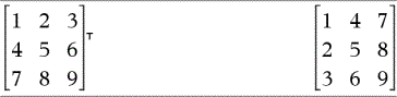 Matrix1TÞmatrix Gibt die komplex konjugierte, transponierte Matrix von Matrix1 zurück. Hinweis: Sie können diesen Operator über die Tastatur Ihres Computers eingeben, indem Sie @t eintippen. |