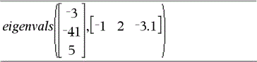 Um die Befehle Versuche (Try), LöFehler (ClrErr) und ÜbgebFeh (PassErr) im Betrieb zu sehen, geben Sie das rechts gezeigte Programm eigenvals() ein. Sie starten das Programm, indem Sie jeden der folgenden Ausdrücke eingeben.