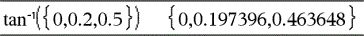 tan/(Liste1) gibt in Form einer Liste für jedes Element aus Liste1 den inversen Tangens zurück. Hinweis: Das Ergebnis wird gemäß der aktuellen Winkelmoduseinstellung in Grad, in Neugrad oder im Bogenmaß zurückgegeben. Hinweis: Sie können diese Funktion über die Tastatur Ihres Computers eingeben, indem Sie arctan(...) eintippen. |