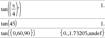 tan(Wert1)ÞWert tan(Liste1)ÞListe