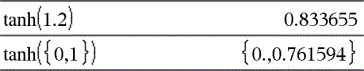 tanh/(Wert1)ÞWert tanh/(Liste1)ÞListe