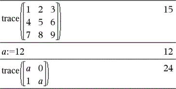trace(Quadratmatrix)ÞWert Gibt die Spur (Summe aller Elemente der Hauptdiagonalen) von Quadratmatrix zurück. |