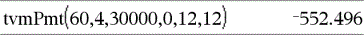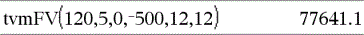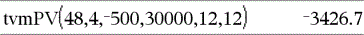 tvmPmt(N,I,PV,FV,[PpY],[CpY],[PmtAt])ÞWert Finanzfunktion, die den Betrag der einzelnen Zahlungen berechnet. Hinweis: Die in den TVM-Funktionen verwendeten Argumente werden in der Tabelle der TVM-Argumente (hier) beschrieben. Siehe auch amortTbl(), hier. |