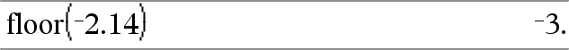 floor(Value1) ⇒ integer Returns the greatest integer that is ≤ the argument. This function is identical to int(). The argument can be a real or a complex number. |