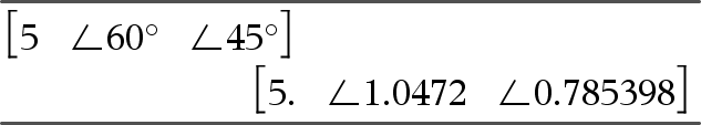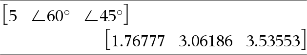 En mode Angle en radians et avec le Format vecteur réglé sur : rectangulaire