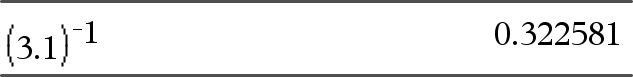 Valeur1 ^/Þvaleur Liste1 ^/Þliste Donne l'inverse de l'argument. Dans le cas d'une liste, donne la liste des inverses des éléments de Liste1. |