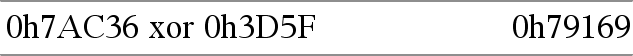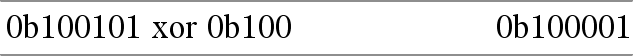 NúmeroInteiro1 xor NúmeroInteiro2 Þ número inteiro Compara dois números inteiros reais bit a bit com uma operação xor. Internamente, ambos os números inteiros são convertidos para números binários de 64 bits assinados. Quando os bits correspondentes forem comparados, o resultado é 1 se um dos bits (mas não ambos) for 1; caso contrário, o resultado é 0. O valor devolvido representa os resultados dos bits e aparece de acordo com o modo base. Pode introduzir os números inteiros em qualquer base numérica. Para uma entrada binária ou hexadecimal, tem de utilizar o prefixo 0b ou 0h, respectivamente. Sem um prefixo, os números inteiros são tratados como decimais (base 10). Se introduzir um número inteiro na base 10 muito grande para uma forma binária de 64 bits assinada, é utilizada uma operação de módulo simétrico para colocar o valor no intervalo adequado. Para mais informações, consulte 4Base2, aqui. Nota: Consulte |