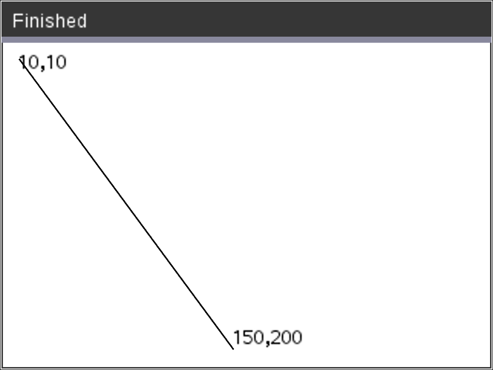 DrawLine x1, y1, x2, y2 Desenhe uma reta a partir de x1, y1, x2, y2. Expressões que se associam a um número que será arredondado para o número inteiro mais próximo. Limites do ecrã: Se as coordenadas especificadas fizerem com que uma parte so segmento de reta seja desenhada fora do ecrã do gráfico, essa parte será recortada e não será exibida uma mensagem de erro. |