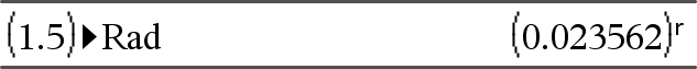 Converte o argumento para a medição do ângulo de radianos. Nota: Pode introduzir esta função através da escrita de @Rad no teclado do computador |