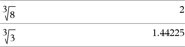 root(Valor1, Valor2) devolve a raiz de Valor2 de Valor1. Valor1 pode ser uma constante de ponto flutuante complexa ou uma constante racional complexa ou número inteiro. Nota: Consulte também Modelo da raiz de índice N, aqui. |