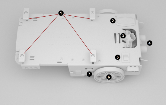 EIN/AUS (I/O) Schalter - Um den Rover ein- oder auszuschalten.