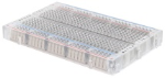 Plataforma para conectar componentes eletrónicos de um projeto inserindo guias de componentes e cabos de ligação direta em pinos. |