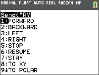 | - | FORWARD (PARA FRENTE), BACKWARD (PARA TRÁS), RIGHT (DIREITA), LEFT (ESQUERDA), STOP (PARAR), STAY (FICAR) |