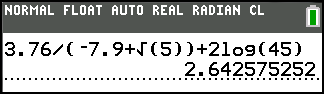 To create an expression, you enter numbers, variables, and functions using the keyboard and menus. An expression is evaluated when you press [enter], regardless of the cursor location. The entire expression is evaluated according to EOS™ rules, and the answer is displayed according to the mode setting for Answer.