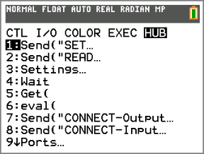 Sie müssen das Hub Menü zur Eingabe von grundlegende TI Befehlen verwenden, wie etwa und . (Drücken Sie ¼ und wählen Sie aus.) |