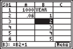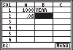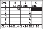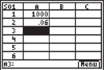 You are here:TI-82 Advanced eGuide > Calculatrice Apps > CellSheet™ Application > Exemple d’activité : Taux d’intérêt simple