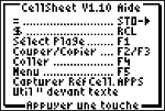 La touche de fonction Menu s’affiche au-dessus de la touche [F5], comme indiqué dans l’écran d’aide CellSheet.