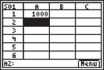2. Faites défiler l’écran jusqu’à la cellule A1. Appuyez sur Í.