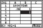 a) Dans la cellule B2, appuyez sur À pour désigner l’année 1.