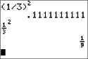 Pour créer une expression, vous pouvez saisir des nombres, des variables et des fonctions à l'aide du clavier et des menus. Une expression est évaluée lorsque vous appuyez sur Í, quel que soit l'emplacement du curseur. Elle est évaluée dans son intégralité conformément aux règles du système EOS™ et le résultat s'affiche en fonction du mode paramétré pour le résultat.