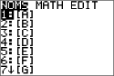 | 2. | Appuyez sur le nombre du clavier qui correspond au nom de matrice souhaité. Ex. : Appuyez sur 1 pour [A] comme illustré. |