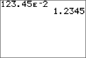 | • | â signifie « x10 » et la calculatrice interprète le nombre entier comme (1.23.45 x 10-2), comme s'il était saisi avec des parenthèses. |