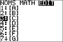 Utilisez le sous-menu NOMS pour insérer le nom de la matrice. |