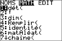 Appuyez sur y ¾ et utilisez le sous-menu MATHS pour sélectionner une commande de matrice. |
