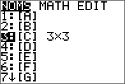 Remarque : n'oubliez pas qu'il est impossible de saisir un nom de matrice sur le clavier de la calculatrice. Utilisez le menu ¾ NOMS pour insérer un nom de matrice.