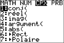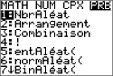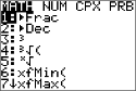 | • | Ex. : appuyez sur » pour afficher le menu MATH. |