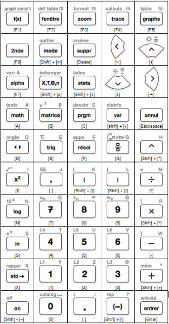 Vous pouvez utiliser le clavier de l'ordinateur pour appuyer sur une touche plutôt que d'avoir à appuyer sur cette touche dans l'image du clavier de TI-SmartView™ CE.