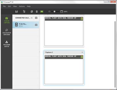 L'espace de travail Screen Capture (Capture d'écran) permet de gérer les captures d'écran de la calculatrice.